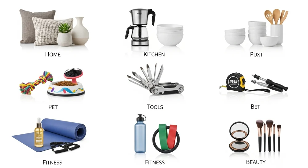 Below are 100 suggested ideas across Home, Kitchen, Storage, Office, Garden, Pet, Baby, Auto, Tools, and Sports categories.