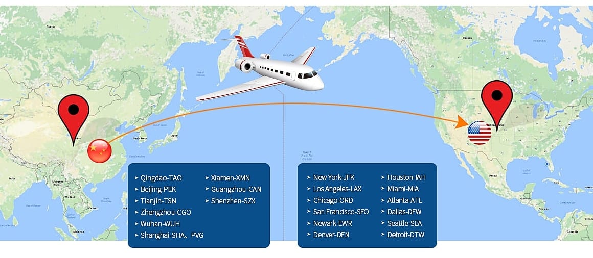We offer direct flights from China to major cities in the West Coast, East Coast, and Midwest of the United States with dedicated flight arrangements. After customs clearance, we utilize our own trucks for delivery, ensuring safety, speed, and convenience.